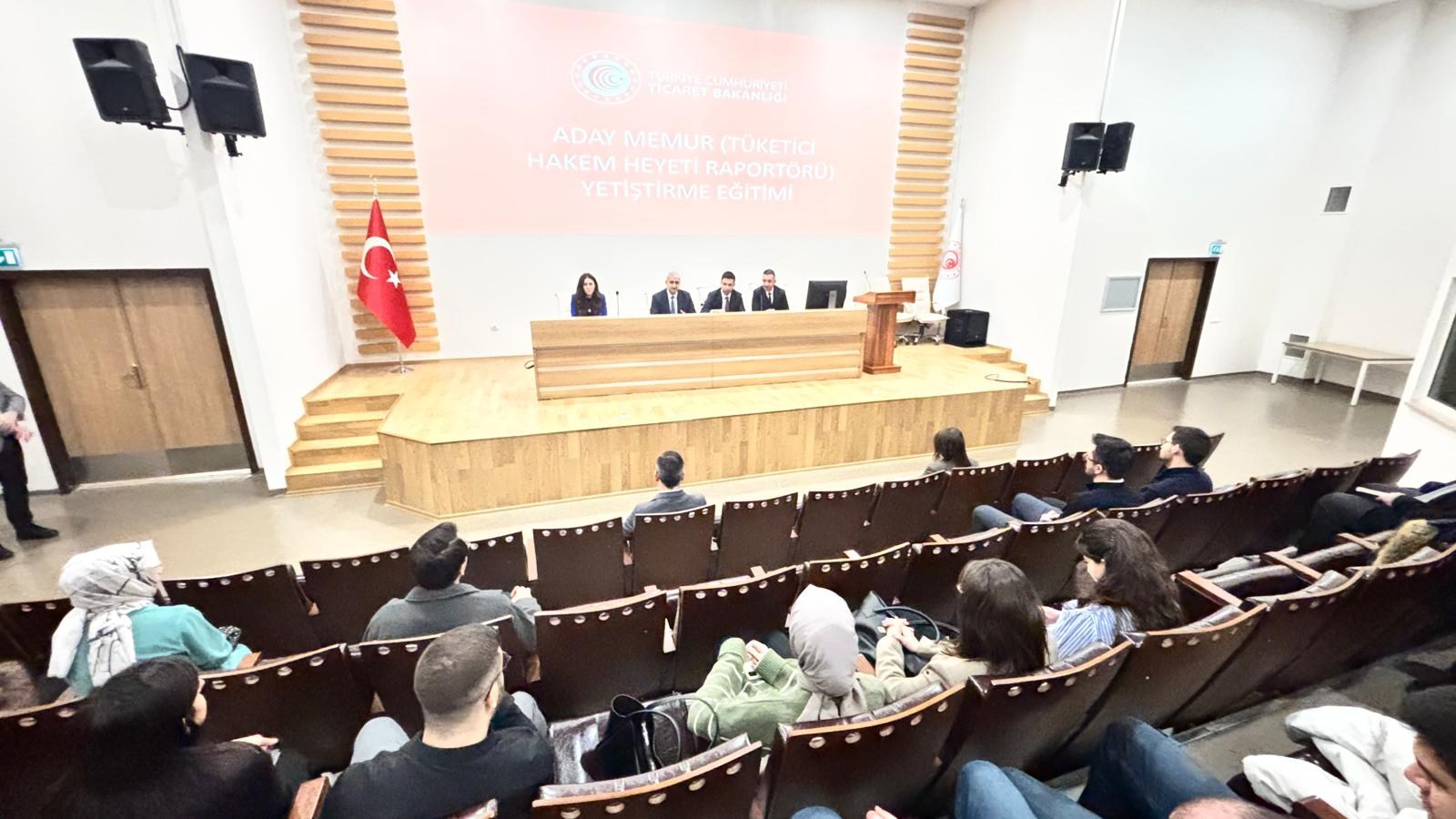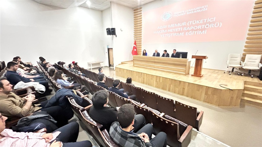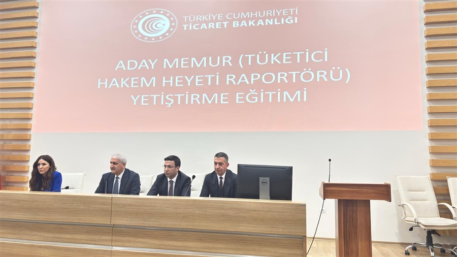 09 Şubat 2026Bakanlığımız Ticaret İl Müdürlüklerinde görevli Aday Tüketici Hakem Heyeti Raportörlerine yönelik, 657 Sayılı Devlet Memurları Kanunu ve Aday Memurların Yetiştirilmesine İlişkin Genel Yönetmeliğin ilgili hükümleri gereğince ve Devlet memuriyetinin gerektirdiği ortak vasıflar ile mesleki bilgi ve becerilerin kazandırılması amacıyla düzenlenen Aday Tüketici Hakem Heyeti Raportörleri Eğitimi devam ediyor.