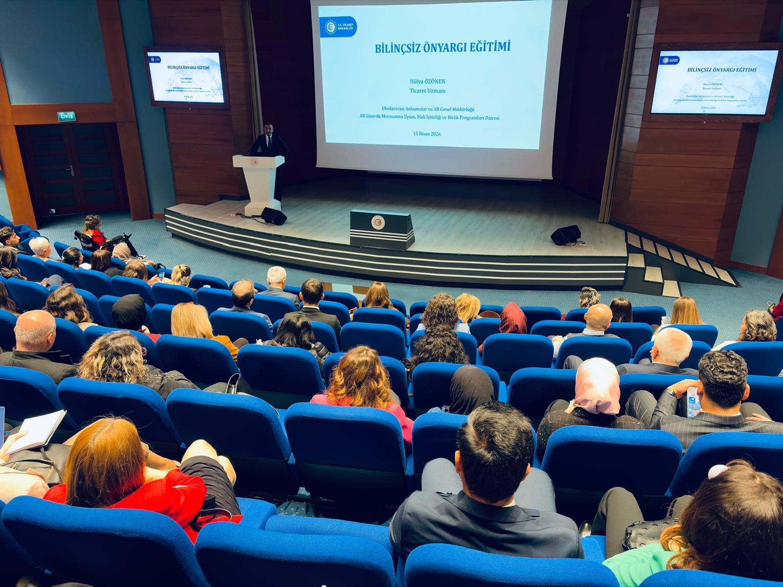 15 Nisan 2026Bakanlığımız merkez birimlerinde görev yapan personele yönelik Uluslararası Anlaşmalar ve Avrupa Birliği Genel Müdürlüğünün, "İş Yerinde Kadın-Erkek Eşitliğinin Sağlanması Eylem Planı (2025-2028)" kapsamında düzenlenen "Bilinçsiz Önyargı Eğitimi", 15 Nisan tarihinde Söğütözü Konferans Salonu’nda gerçekleştirilmiştir.