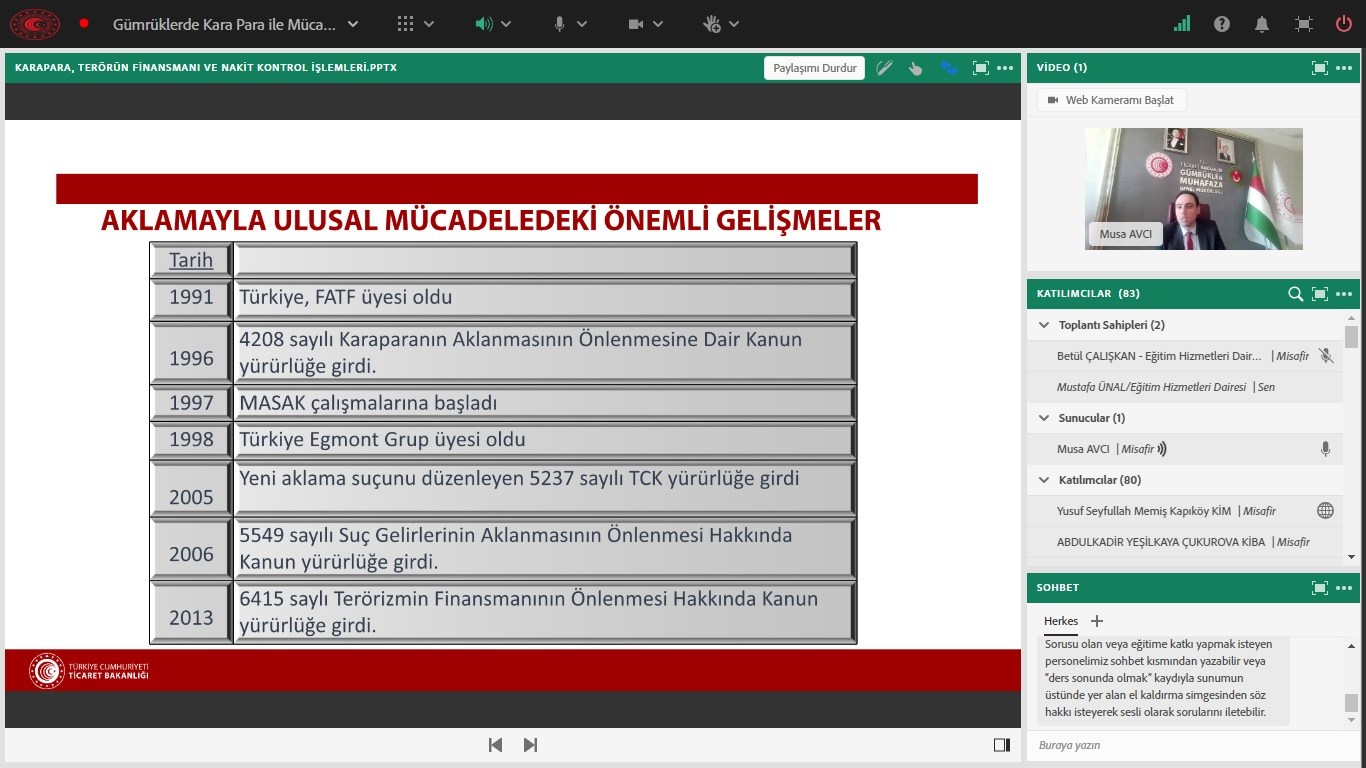 Gümrüklerde Kara Para, Terörün Finansmanı ile Mücadele Uzaktan Eğitim Programı Düzenlendi