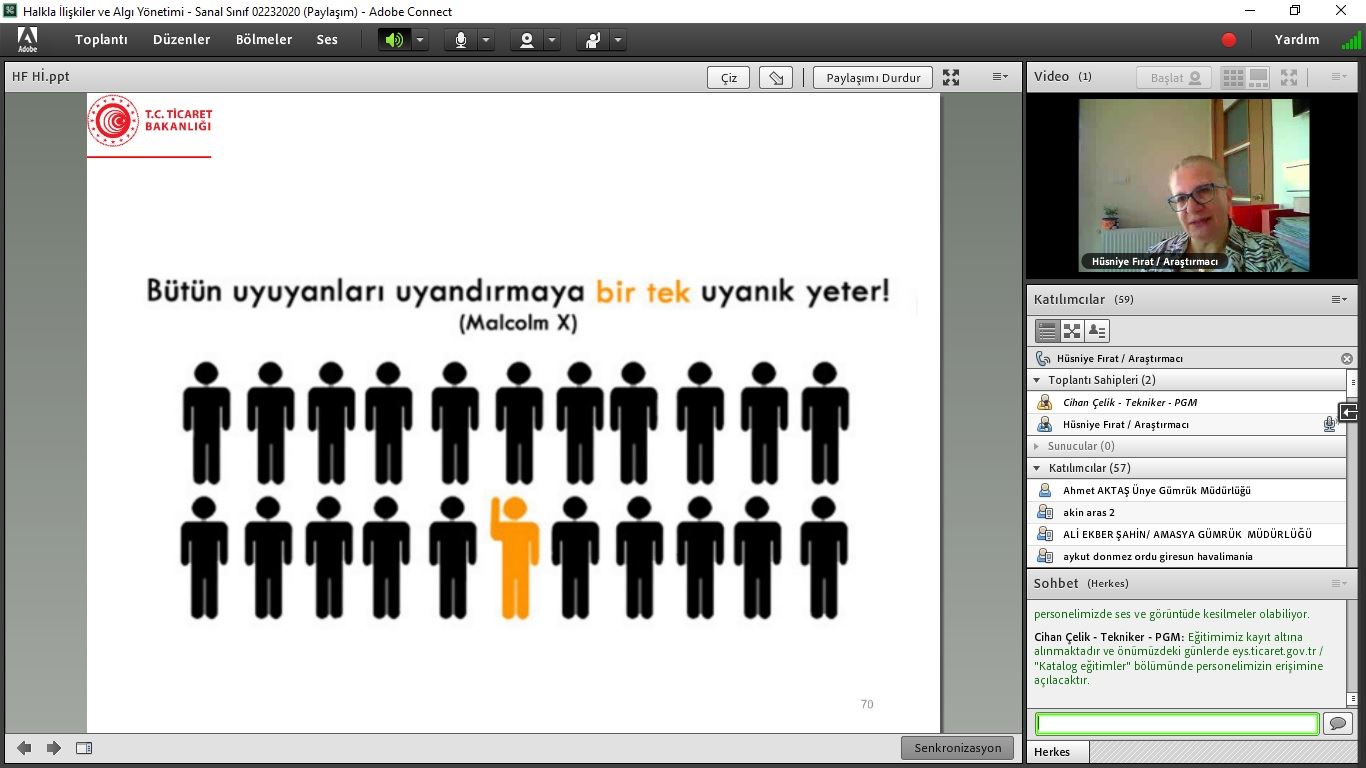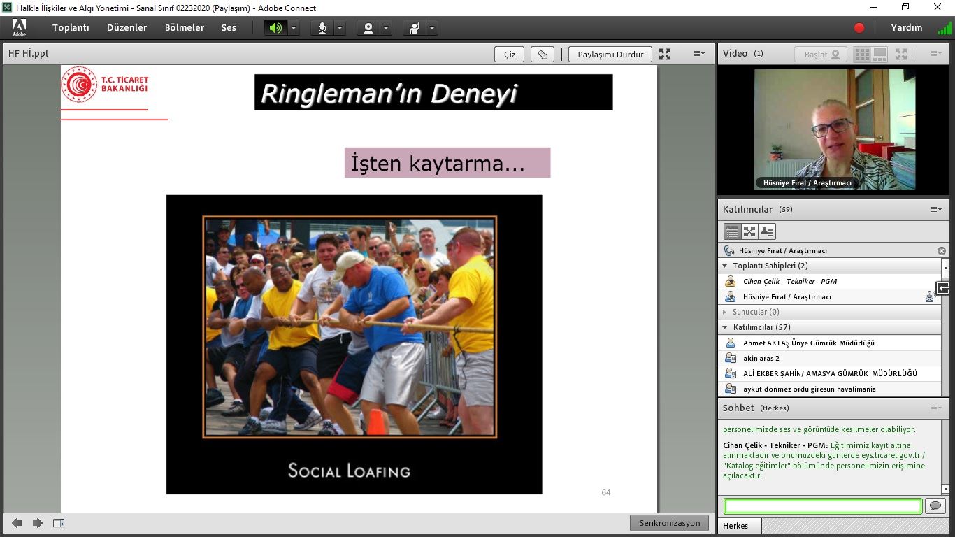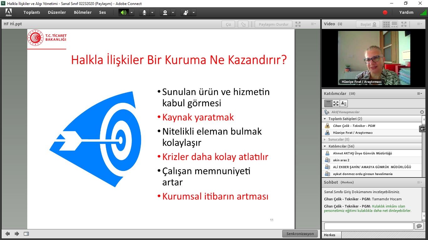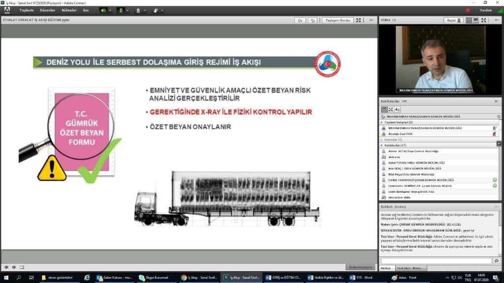7 Temmuz tarihinde uzaktan eğitim yöntemi ve sanal sınıf aracılığıyla yapılan eğitime 64 personel katıldı.