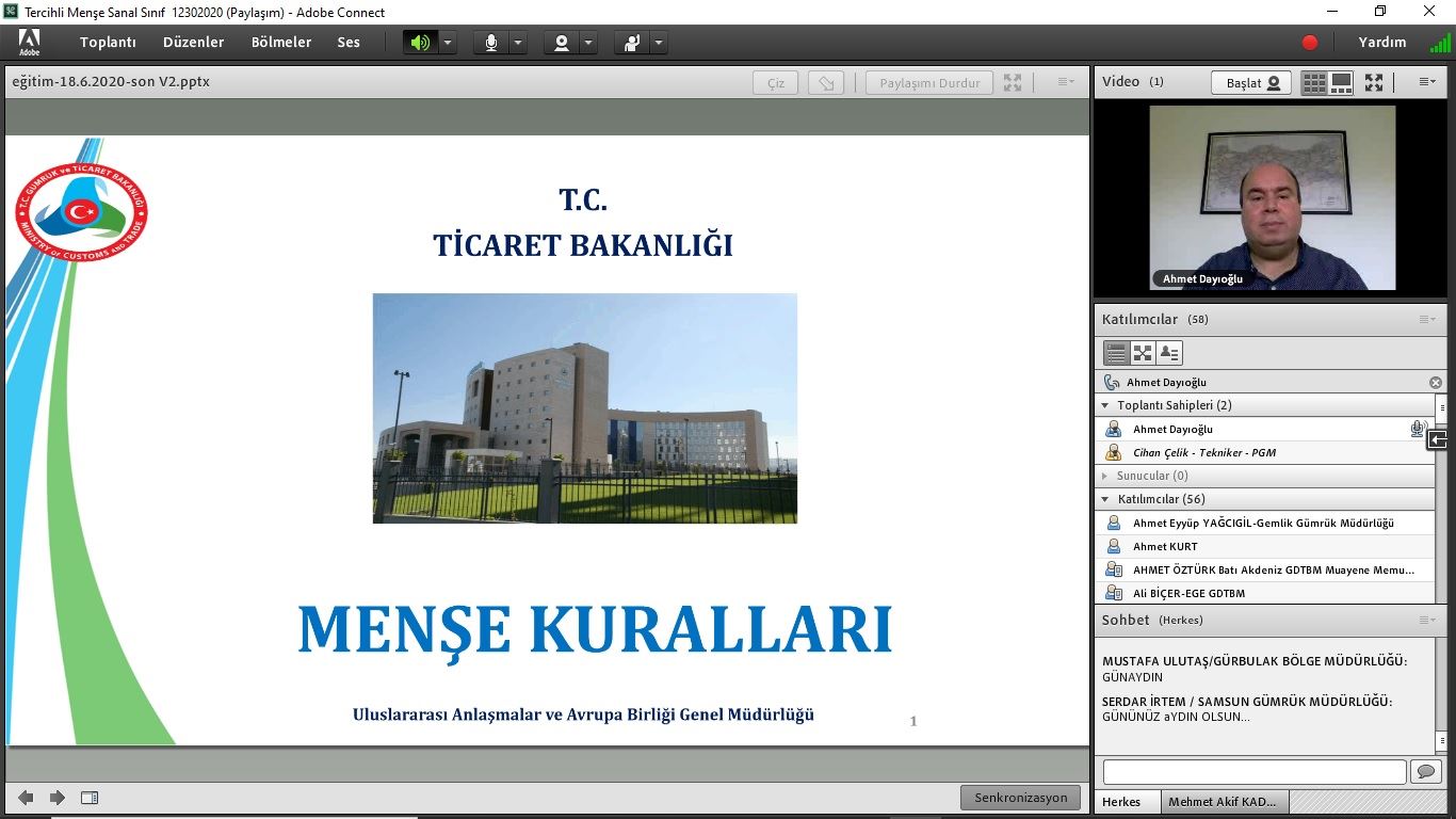 Ticaret Bakanlığı Gümrük ve Dış Ticaret Bölge Müdürlüklerinde görevli "Muayene Memuru" unvanındaki personele yönelik “Tercihli Menşe (ileri düzey)” konusunda eğitim verildi.