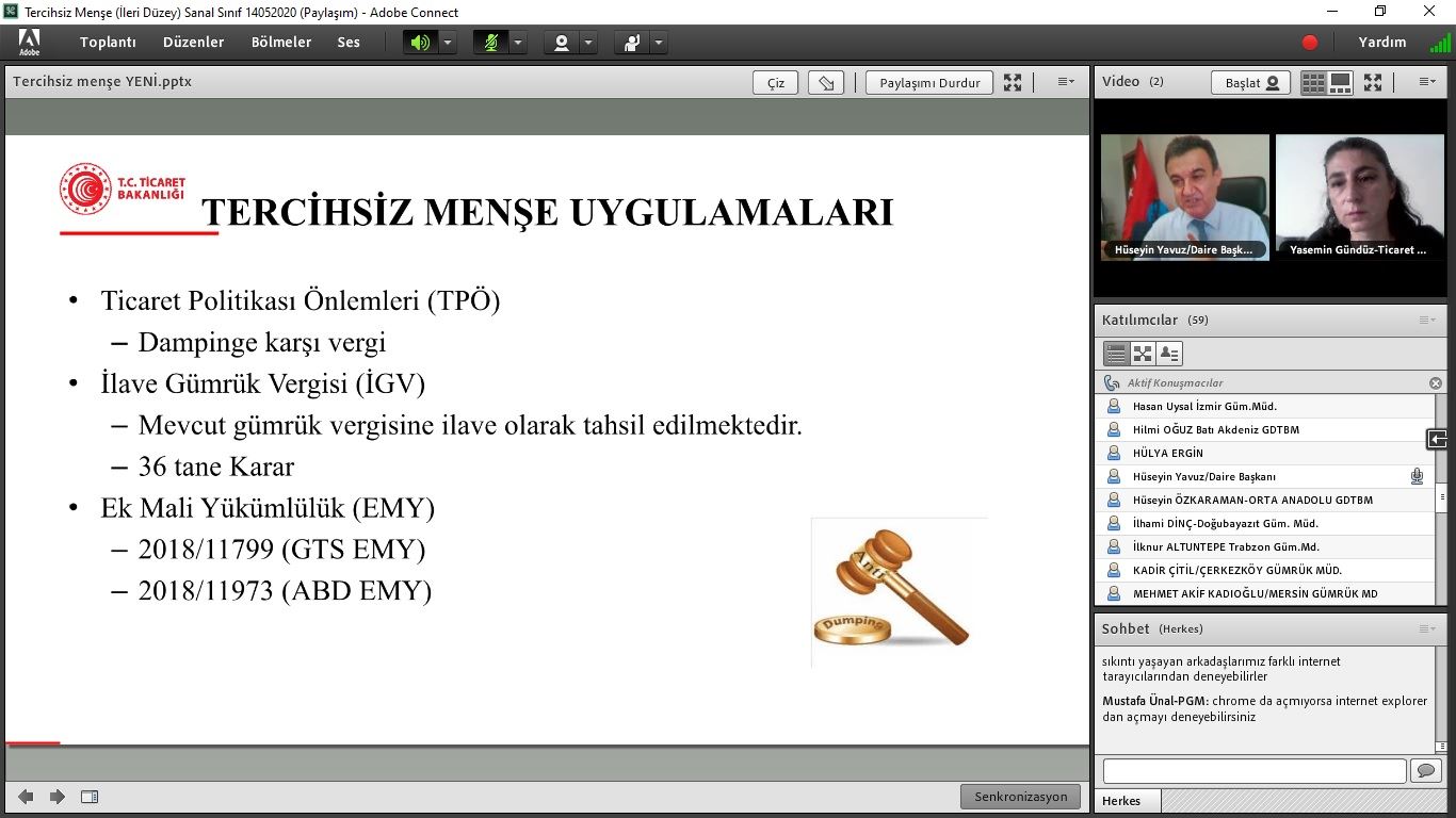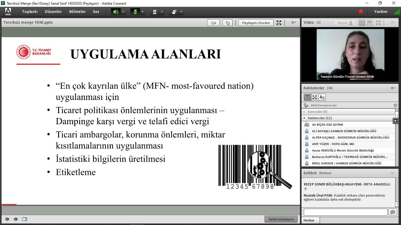 Ticaret Bakanlığı Gümrük ve Dış Ticaret Bölge Müdürlüklerinde görev yapan personele yönelik Tercihsiz Menşe (ileri düzey) Eğitimi düzenlendi.