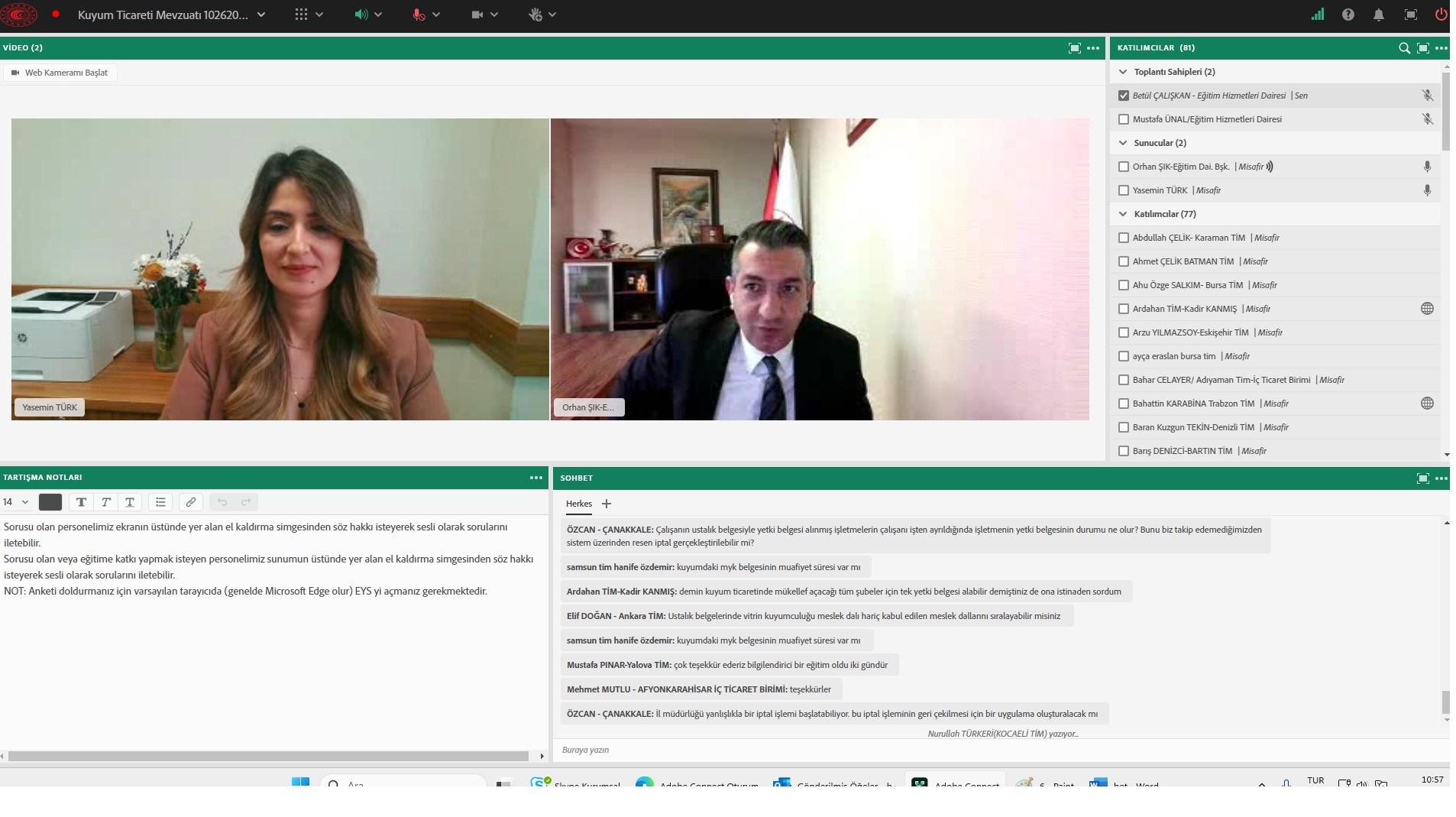 18 Şubat tarihinde uzaktan eğitim yöntemi ve sanal sınıf aracılığıyla düzenlenen eğitime 81 personel katıldı.